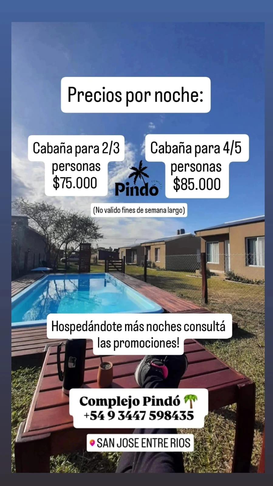 Complejo Pindó es un hospedaje familiar ubicado en San José, Departamento de Colón Entre Ríos. Un lugar ideal para descansar y disfrutar de la naturaleza en familia y amigos.